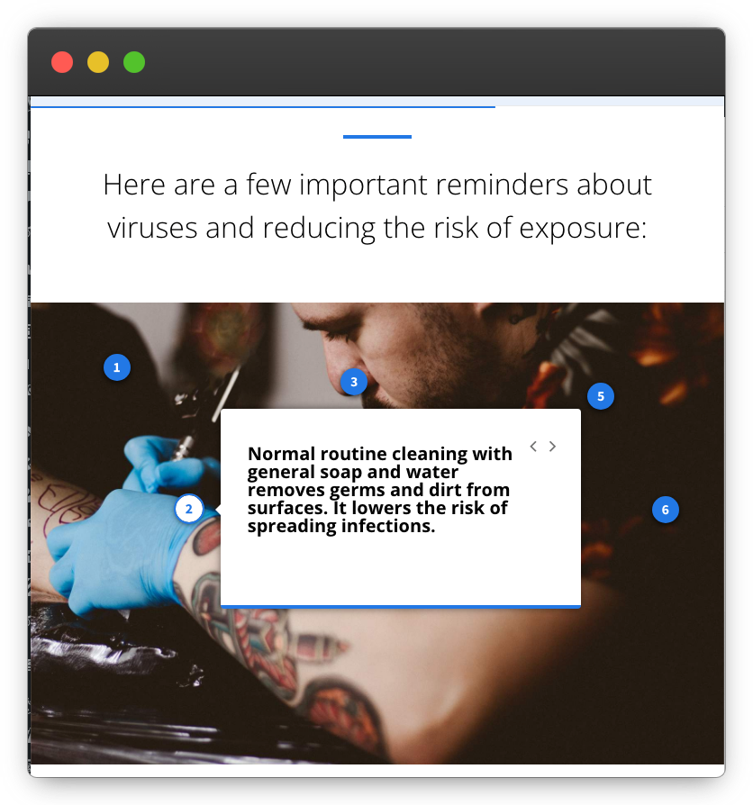 Interactive online Cleaning and Disinfecting the Workplace for prevention of infectious diseases training. This short course is particularly relevant to those working in Tattoo and permanent cosmetics studios, nail salons and other service providers with salon or studio premises.